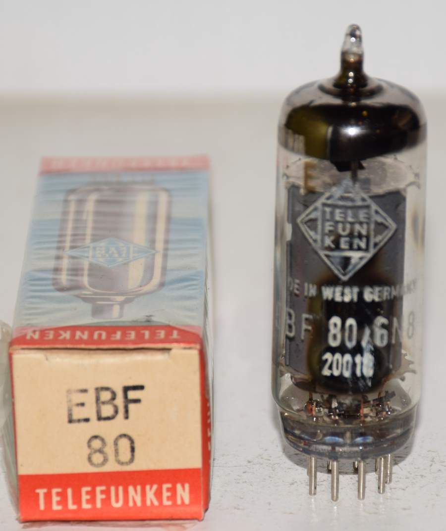 2) EBF80=6N8 Tungsram Hungary branded Telefunken Germany 1961