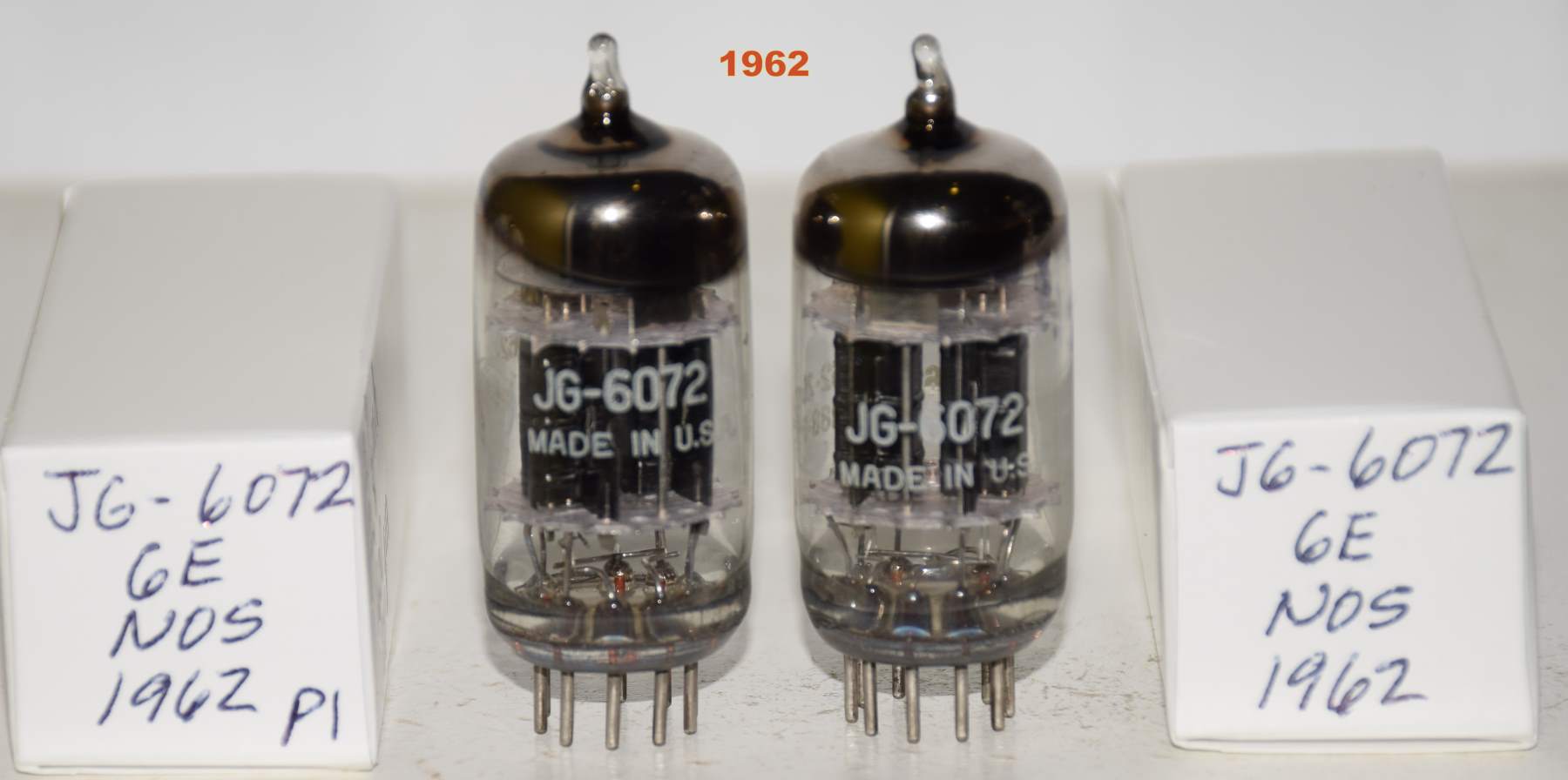 1 low noise pair) JG-6072 GE NOS triple mica black plates "O" getter 1962 in white boxes - same Gm