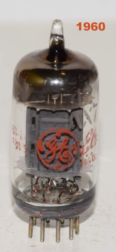 (!!!!) (Good Value Single 1960) 12AX7 GE tall gray ribbed plates "U" getter used/good 1960 (Gm=1600/1450 and 1.1/0.9ma)