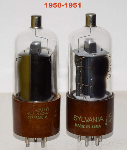 (!) (PAIR) 5933=807W Sylvania used/good - double D getters - 1950 and 1952 same build (64ma and 62.5ma)