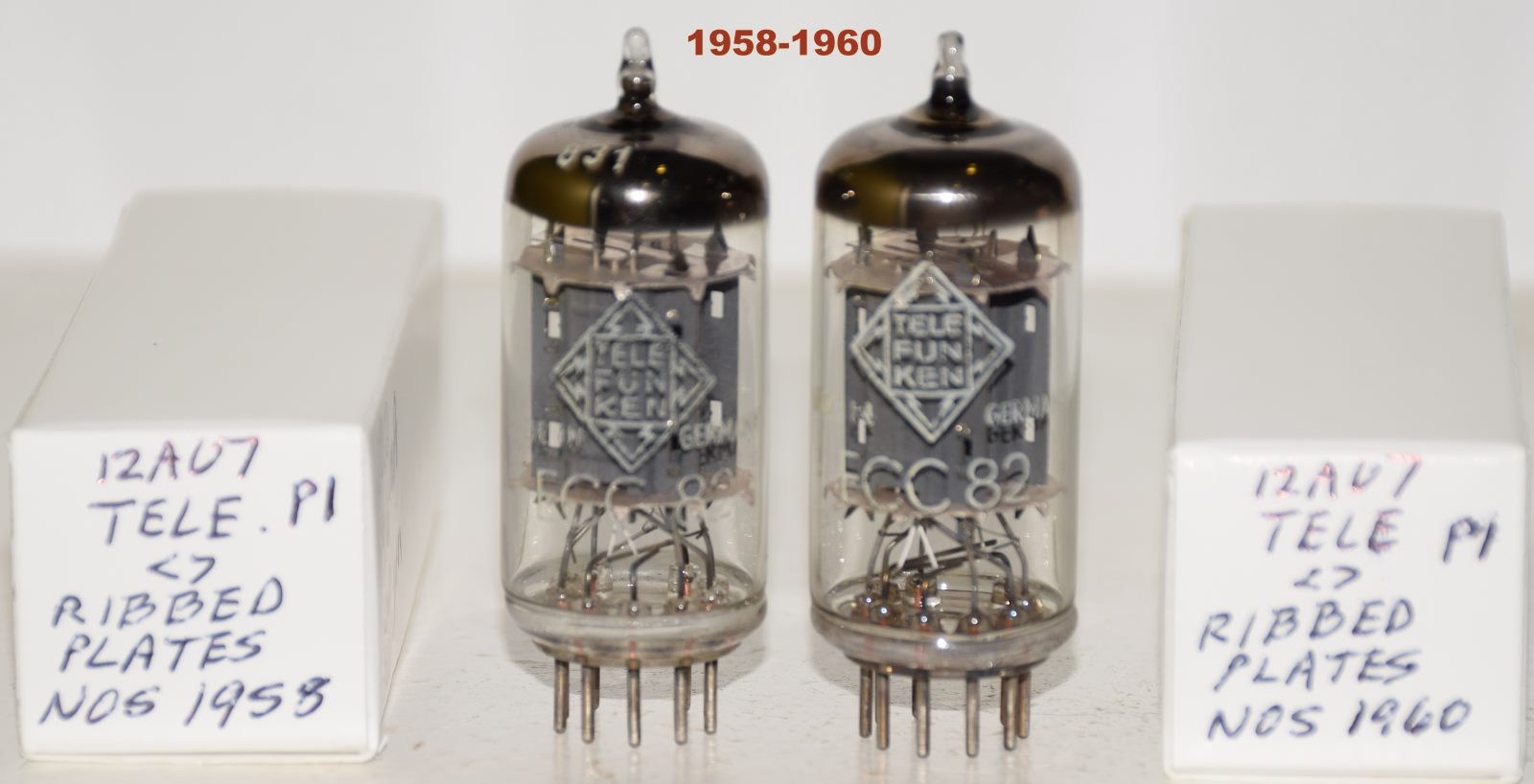 1 low noise pair) ECC82=12AU7 Telefunken Diamond Bottom ribbed plates NOS 1958-1960 in white boxes - good printing