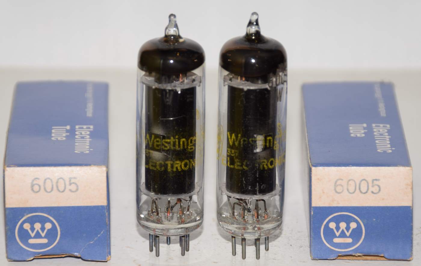 (!!!) (PAIR) 6005W Sylvania branded Westinghouse black plates NOS 1970's (45ma and 48ma)