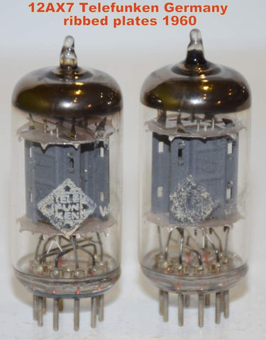 (!!!!) (Best Pair for the money) 12AX7=ECC83 Telefunken Germany <> bottom ribbed plates used/good 1959 (0.9/1.2ma and 1.0/1.1ma) 1-3% matched