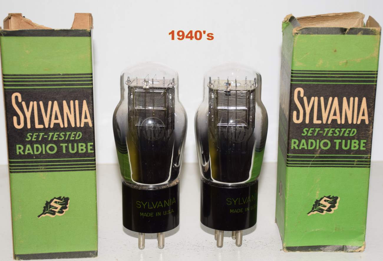 1 pair) 12A Sylvania green leaf NOS 1940's original boxes - tubes were factory sealed