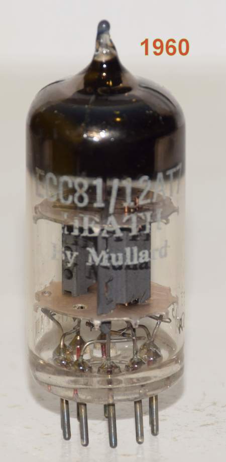 (!!) 12AT7=ECC81 Mullard UK "D" getter used/good 1960 (6.8/7.5ma)
