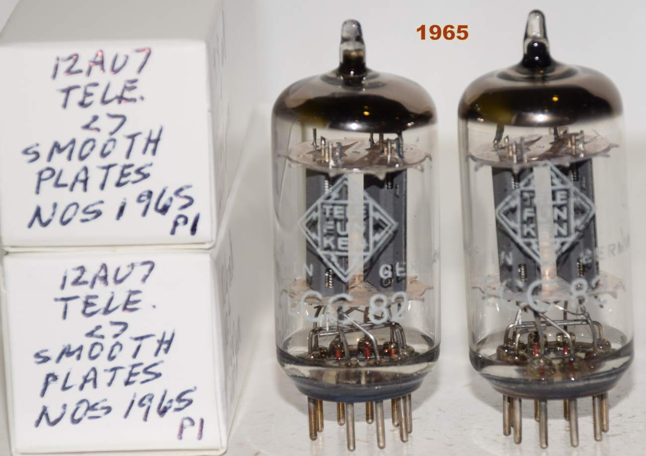 (!!!!!) (Best Pair 1965) 12AU7=ECC82 Telefunken Germany <> bottom smooth plates NOS 1965 (10.6/10.4ma and 9.8/10.9ma) (Close Gm matching)