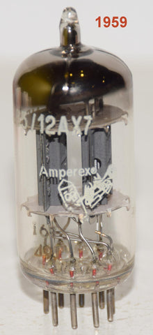 1 low noise tube) 12AX7 Amperex Bugle Boy Holland large O" getter halo used/good 1959 in white box - good printing (161 series)