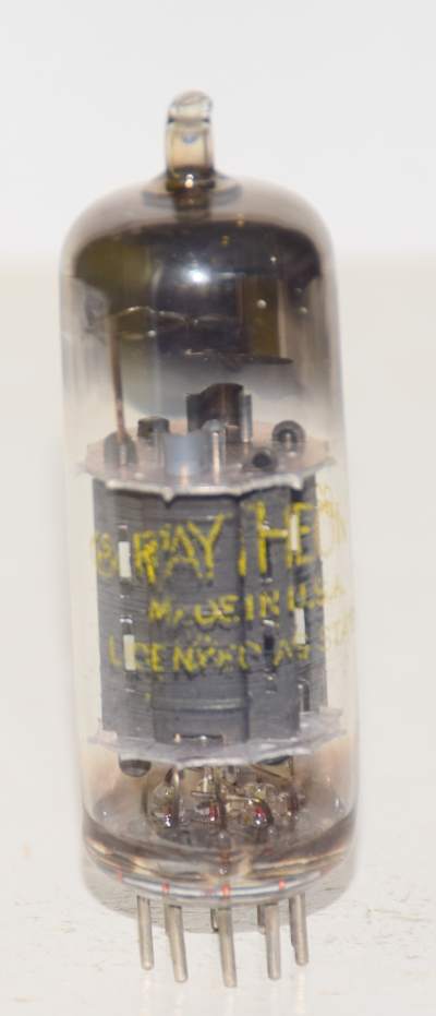 1 low noise tube) 12BH7 Raytheon Oval Black Plates "D" getter used/good 1950's