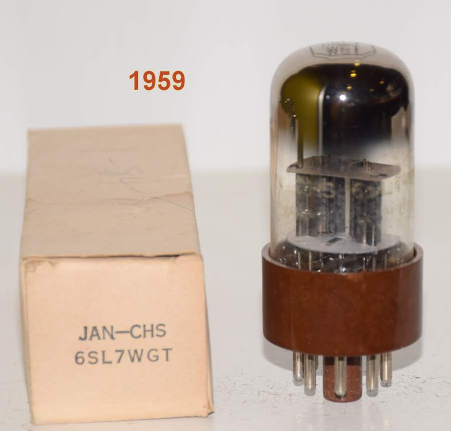 1 low noise tube) JAN-CHS-6SL7WGT Sylvania brown base round black plates "D" getter NOS 1959