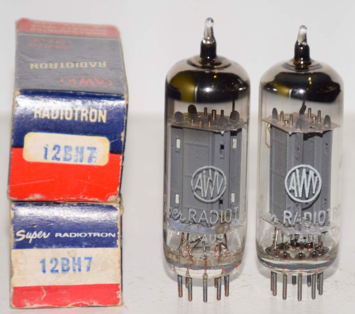 (!!!!!) (Best Pair #1) 12BH7 Super Radiotron Australia gray ribbed plates NOS 1960's (10.2/11.5ma and 10.2/11.2ma) 1-3% matched (close Gm) (similar sound to RCA) (rare)