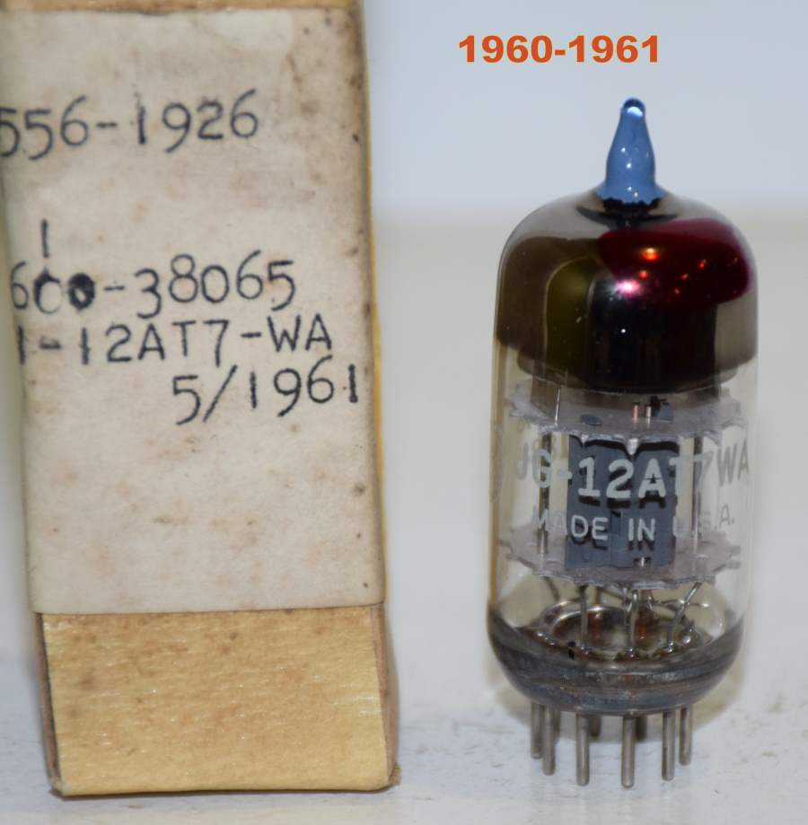 1 low noise tube) JG-12AT7WA=6201 GE NOS "blue tip - red dot" triple mica, "O" getter halo, gray plates 1960 - boxed in 1961 - tan military box