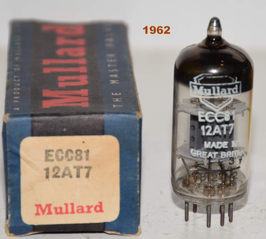 1 low noise tube) ECC81=12AT7 Mullard BVA UK NOS copper grid posts 1962 good printing