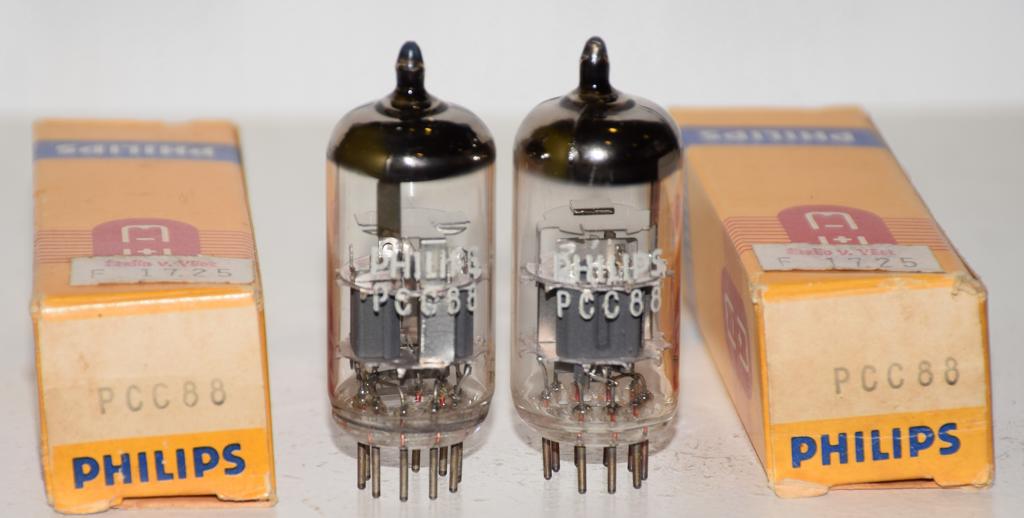 (!!!!) (Best Value Pair #1) PCC88=7DJ8 Philips by EI Yugoslavia "O" getter NOS 1971-1974 (15.2/11.0ma and 15.6/12.7ma) (sweet sound - Same as Holland made) (close Gm)