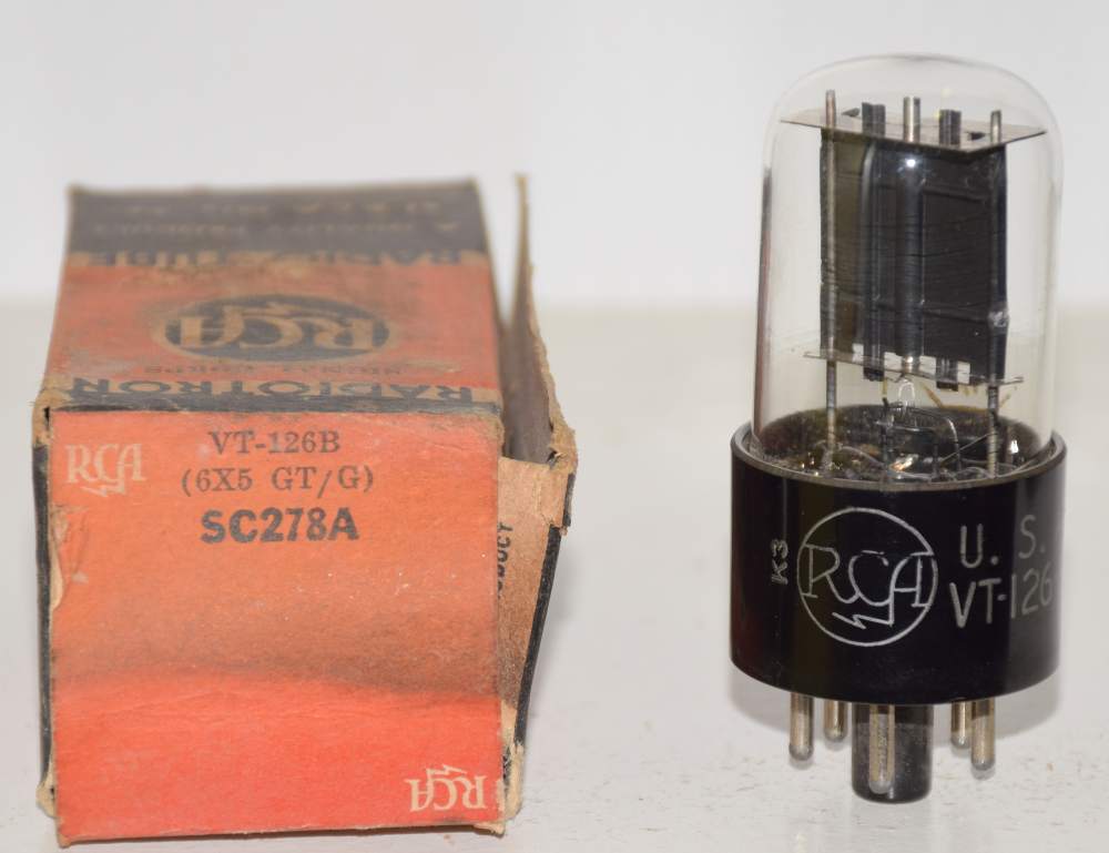 (!!!) (Best Overall Single) 6X5GT=VT-126B RCA black plates NOS 1943 (58/40 and 58/40) 1% section balance