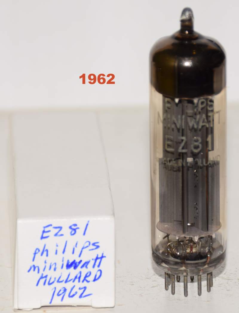 EZ81 Philips Miniwatt by Mullard Blackburn UK "D" getter low hours/tests like new 1962
