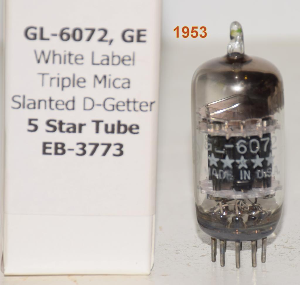 1 low noise tube) GL-6072 GE 5 star triple mica black plates "D" getter halo 1953 like new good printing