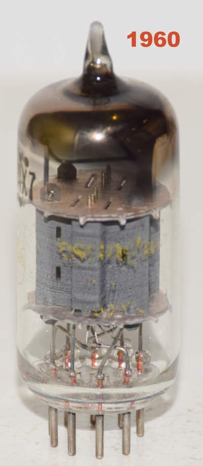 1 low noise tube) 12AX7 Westinghouse gray pinched plates "D" getter like new 1960 faded printing in white box (1-2% section balance)