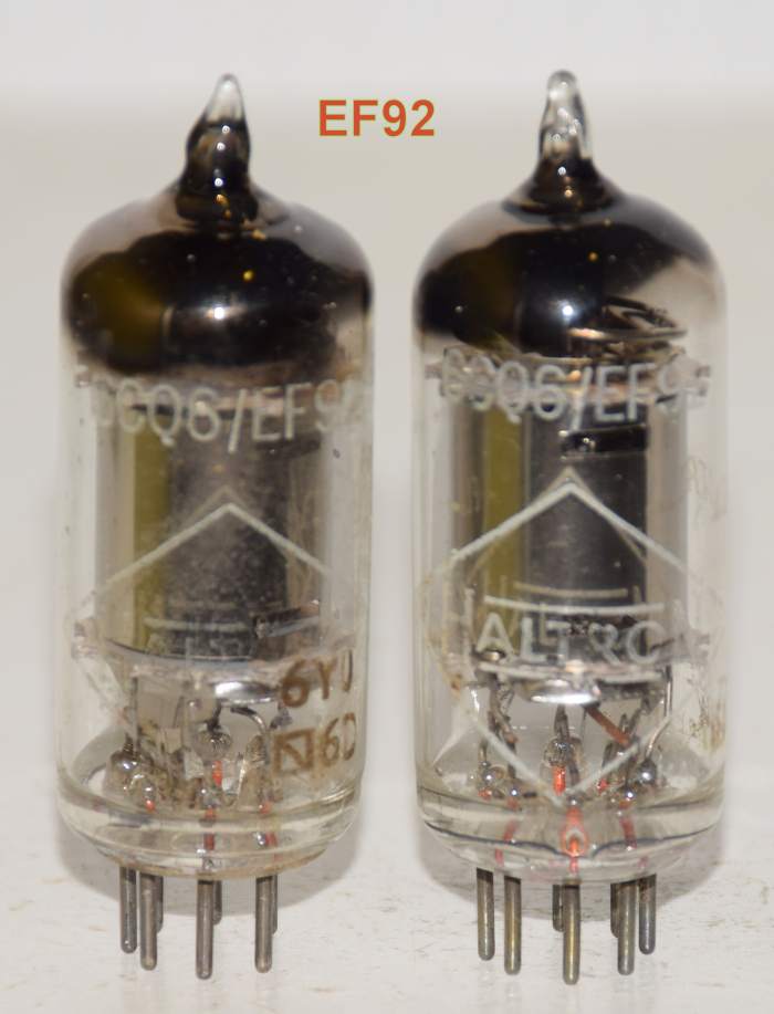 1 pair) 6CQ6=EF92 Haltron by Mullard England used/good 1956 (Whyteleafe plant)