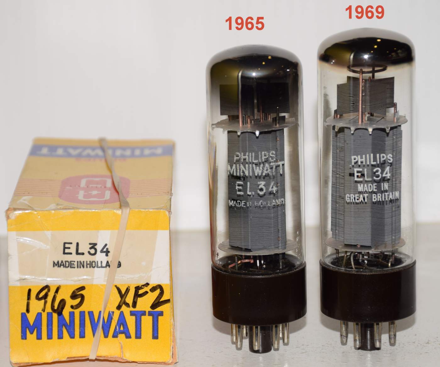 1 pair) EL34 Philips by Mullard XF2 double halo "O-O" NOS 1965 and single halo "O" 1969 like new